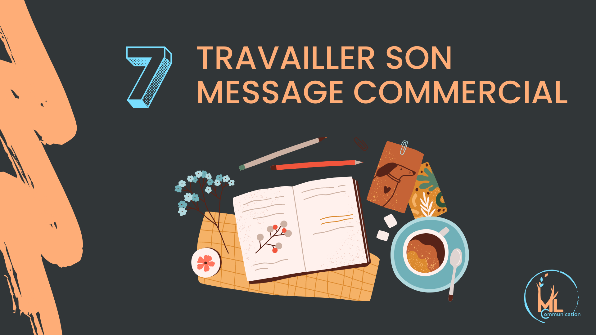 Le message commercial consiste à être capable d’expliquer votre activité en une ou deux phrases. Ce travail n’est pas évident mais totalement réalisable. Il faut être clair, cohérent, en adéquation avec ses valeurs💡 Les questions à se poser : Quelle est mon activité ? Quels sont mes produits/services ? Qu’est ce qui me différencie des autres ? Etc.