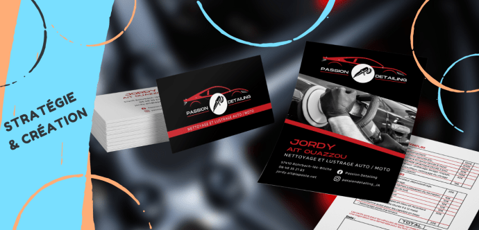 Retour sur le travail mené avec Passion Detailing à Rohrbach-lès-Bitche (57) : identité de marque, flyers et cartes de visite.